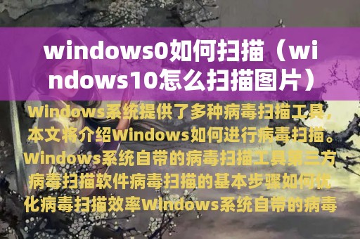 病毒扫描是保护计算机安全的重要措施之一。Windows系统提供了多种病毒扫描工具,本文将介绍Windows如何进行病毒扫描。