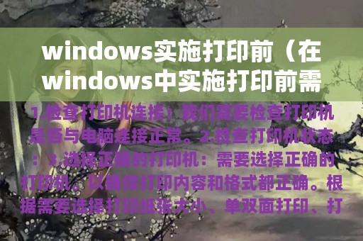 2. 本文将为您介绍Windows实施打印前的注意事项和操作步骤。
