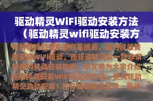 随着无线网络的普及,WiFi成为了我们日常生活中必不可少的一部分。但是,有时候我们在安装完系统后,会发现电脑无法连接WiFi,这时候就需要安装WiFi驱动。而驱动精灵是一款非常好用的驱动安装软件,本文将为大家介绍驱动精灵安装WiFi驱动的方法。