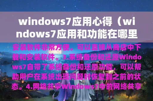 3. Windows 7的软件安装、系统备份和还原、网络共享、系统优化等功能非常实用。