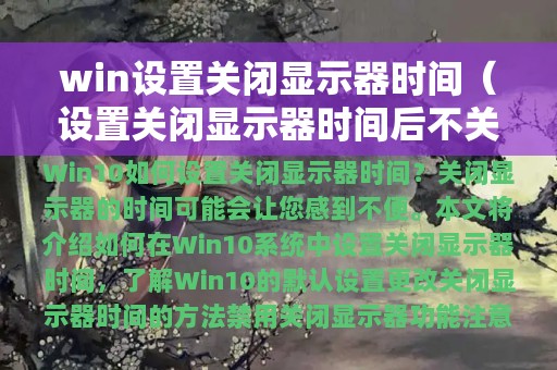 Win10系统中,如果长时间不使用电脑,显示器会自动关闭,这有助于节省电力和延长电脑寿命。但是,如果您需要长时间使用电脑,关闭显示器的时间可能会让您感到不便。本文将介绍如何在Win10系统中设置关闭显示器时间,让您更好地使用电脑。