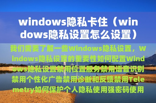 随着互联网的发展,我们越来越依赖计算机和网络。但是,我们在使用Windows系统时,需要注意我们的隐私和安全。为了保护我们的隐私,我们需要了解一些Windows隐私设置,并对其进行适当的配置。本文将介绍Windows隐私设置的相关内容,帮助您更好地保护自己的隐私。