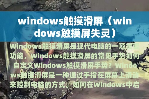 Windows触摸滑屏是现代电脑的一项重要功能,它可以使用户更加方便地操作电脑。本文将围绕此主题展开,为大家介绍Windows触摸滑屏的相关内容。
