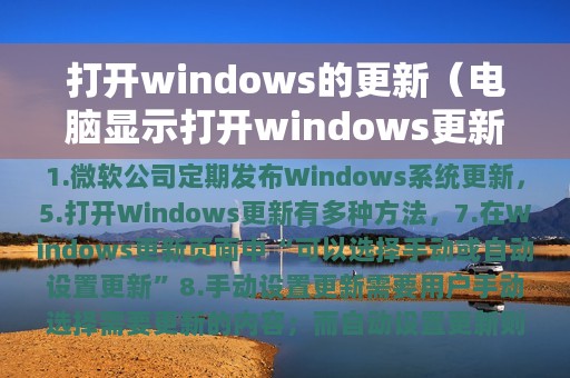 3. 本文将介绍打开Windows更新的方法和注意事项。