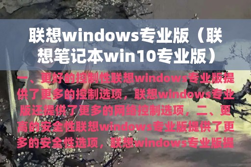 联想windows专业版是一款功能强大的操作系统,它为用户提供了更多的控制和安全性,同时也提供了更好的性能和稳定性。本文将从以下四个方面介绍联想windows专业版的特点和优势。