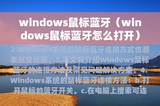 3. 本文将介绍Windows鼠标蓝牙的连接方法及常见问题解决方案。