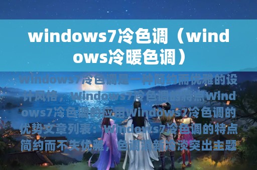 Windows 7冷色调是一种简约而优雅的设计风格,它的色调清新冷淡,给人以舒适的感觉。本文将为您介绍Windows 7冷色调的相关内容,包括其特点、应用、优势等,希望能为您带来一些启发和帮助。