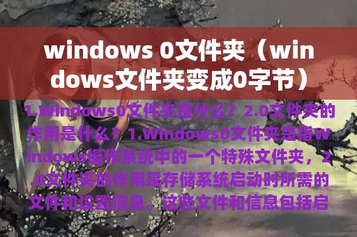 1. Windows 0文件夹是指Windows操作系统中的一个特殊文件夹,它位于系统盘根目录下,通常是C盘。
