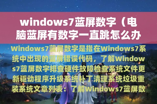 Windows 7 蓝屏数字是指在 Windows 7 系统中出现的蓝屏错误代码,这些错误代码通常指示着系统出现了严重的问题,需要及时解决。本文将为您介绍如何解决 Windows 7 蓝屏数字问题,帮助您快速恢复系统正常运行。