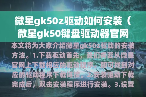 微星gk50z是一款高性能的游戏键盘,但是在使用过程中需要安装相应的驱动才能发挥出它的优势。本文将为大家介绍微星gk50z驱动的安装方法。