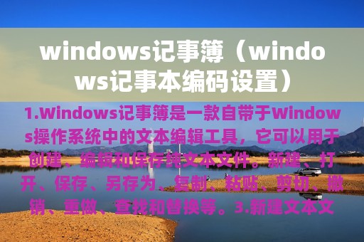 2. 本文将介绍Windows记事簿的基本功能和使用方法。