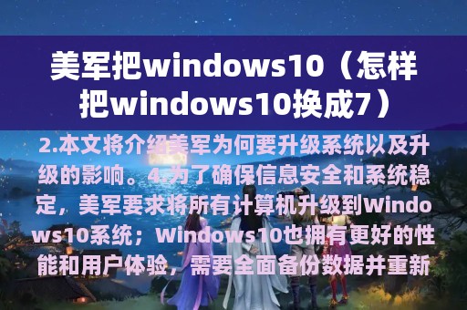4. 为了确保信息安全和系统稳定,美军要求将所有计算机升级到Windows 10系统;