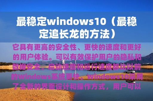 Windows 10是微软公司推出的最新操作系统,它具有更高的安全性、更快的速度和更好的用户体验。本文将围绕最稳定的Windows 10,为大家介绍它的特点、功能和优势。