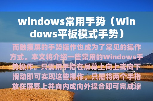 Windows系统的触摸屏已经成为了现代电脑的标配,而触摸屏的手势操作也成为了常见的操作方式。在Windows系统中,有许多常用的手势操作,这些操作可以帮助用户更加高效地使用电脑。本文将介绍一些常用的Windows手势操作。