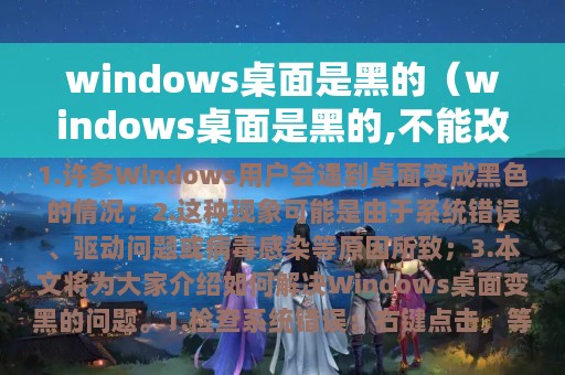 3. 本文将为大家介绍如何解决Windows桌面变黑的问题。