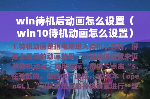1. 待机动画是指电脑进入待机状态时,屏幕上显示的动画效果。