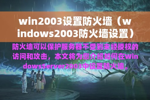 在Windows Server 2003中,设置防火墙是非常重要的一项任务。防火墙可以保护服务器不受到未经授权的访问和攻击,确保服务器安全运行。本文将为您介绍如何在Windows Server 2003中设置防火墙。