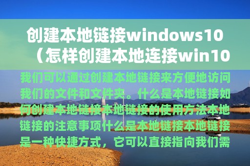 在Windows 10中,我们可以通过创建本地链接来方便地访问我们的文件和文件夹。本地链接是一种快捷方式,可以直接指向我们需要访问的文件和文件夹,使我们的工作更加高效。