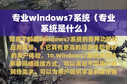 2. 本文将介绍Windows 7系统的特点、优势和适用范围。