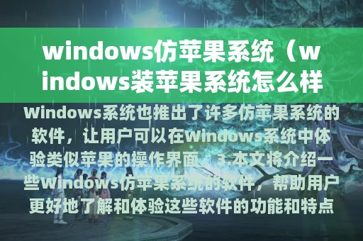3. 本文将介绍一些Windows仿苹果系统的软件,帮助用户更好地了解和体验这些软件的功能和特点。