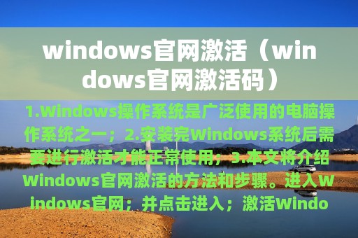 3. 本文将介绍Windows官网激活的方法和步骤。