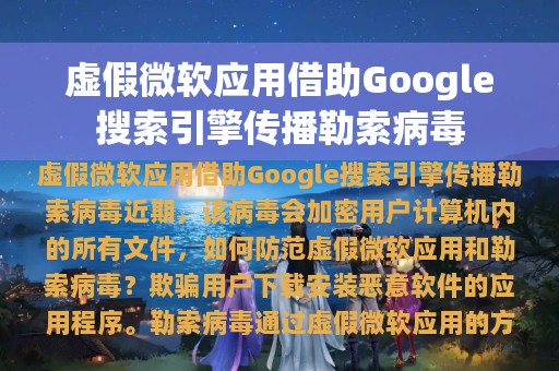 近期,一种新型勒索病毒通过虚假微软应用的方式,借助Google搜索引擎迅速传播。该病毒会加密用户计算机内的所有文件,并勒索赎金以解密文件。为了避免用户受到这种病毒的侵害,我们需要了解一些相关信息。