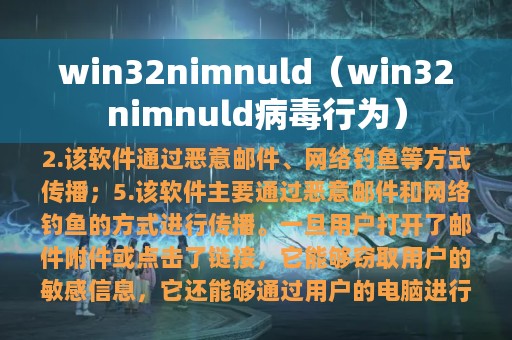 1. Win32nimnuld是一种恶意软件,能够对计算机造成严重的危害;