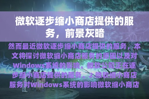 微软公司的商店一度被认为是Windows系统的重要组成部分,然而最近微软逐步缩小商店提供的服务,这给Windows系统带来了一些影响。本文将探讨微软缩小商店服务的原因以及对Windows系统的影响。