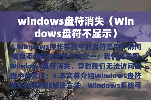 3. 本文将介绍Windows盘符消失的原因和解决方法。