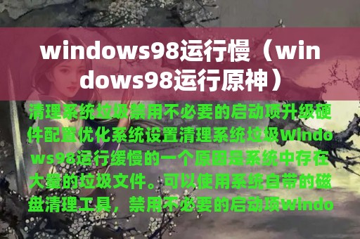 Windows 98运行慢是一个常见的问题,很多用户都会遇到。本文将为大家介绍一些解决Windows 98运行缓慢的方法。