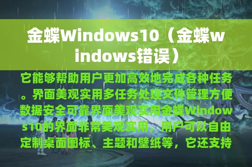 金蝶Windows10是一款功能强大、界面美观实用、多任务处理、文件管理方便、数据安全可靠的操作系统。它的各种特点和功能,为用户提供了更加高效、安全、便捷的计算体验。
