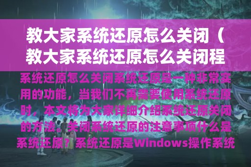 系统还原是Windows操作系统中的一个功能,可以帮助我们恢复系统到之前的某个时间点。当我们的系统出现问题时,可以通过系统还原来解决问题。但是,在系统运行正常的情况下,系统还原也会占用一定的系统资源,因此有时候我们需要关闭系统还原。