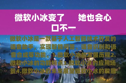 微软小冰是一款基于人工智能技术开发的语音助手,具有自我学习和进化能力。她可以进行语音交互,实现智能问答、语音识别和语音合成等功能。随着技术的不断升级,微软小冰也在不断变化着,她也会心口不一。