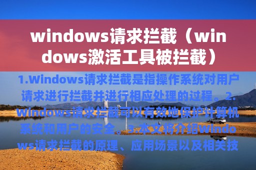 1. Windows请求拦截是指操作系统对用户请求进行拦截并进行相应处理的过程。