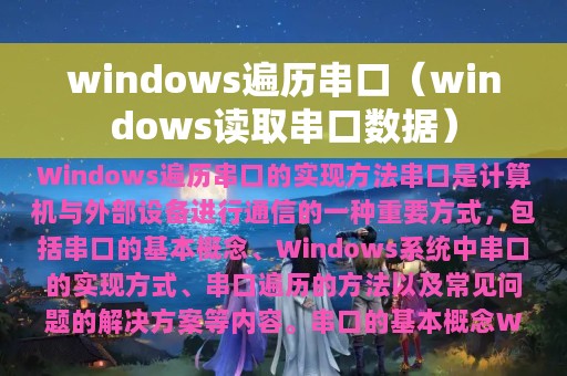 串口是计算机与外部设备进行通信的一种重要方式,而在Windows系统中,遍历串口也是一项非常重要的任务。本文将围绕Windows遍历串口的实现方法进行详细介绍,包括串口的基本概念、Windows系统中串口的实现方式、串口遍历的方法以及常见问题的解决方案等内容。