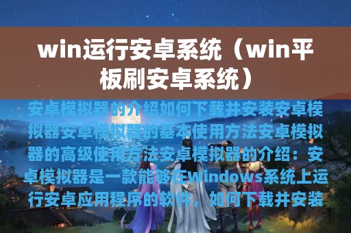 通过本文的介绍,我们可以了解到如何在Windows系统上运行安卓系统。通过下载安卓模拟器并按照提示进行安装,我们可以在电脑上使用安卓应用程序,同时还可以进行各种高级操作。希望本文可以帮助大家更好地使用安卓模拟器。