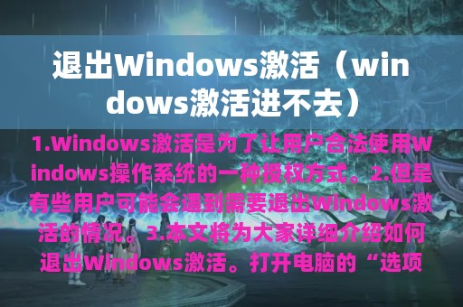 3. 本文将为大家详细介绍如何退出Windows激活。
