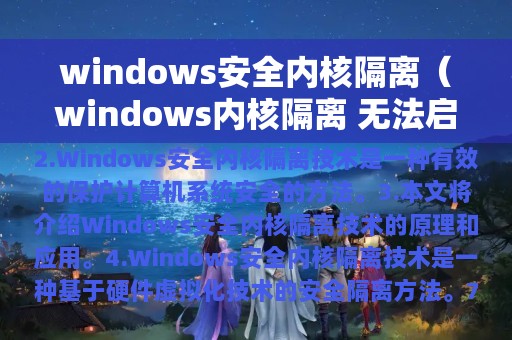 3. 本文将介绍Windows安全内核隔离技术的原理和应用。