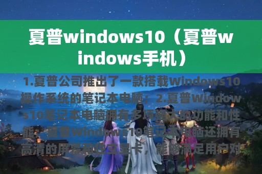 3. 本文将详细介绍夏普Windows 10笔记本电脑的特点和优势。