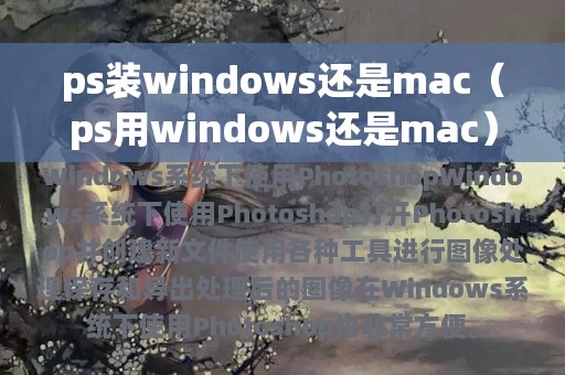 Photoshop是一款非常强大的图像处理软件,在Windows和Mac平台上都有广泛的应用。本文将围绕着如何在不同操作系统中安装和使用Photoshop展开讲述。