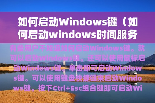 Windows键是Windows操作系统中的一个快捷键,它可以帮助用户快速访问Windows系统中的各种功能和应用程序。但是,有些用户不知道如何启动Windows键。本文将介绍如何启动Windows键,并提供一些使用Windows键的技巧。