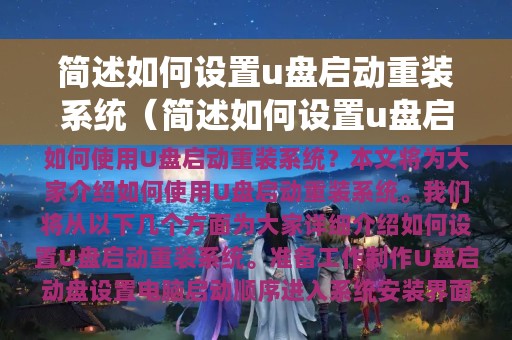 本文将为大家介绍如何使用U盘启动重装系统。首先,需要准备一个U盘和一个可用的系统镜像文件。接下来,我们将从以下几个方面为大家详细介绍如何设置U盘启动重装系统。