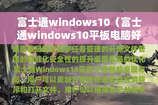 富士通Windows 10是一款基于Windows 10操作系统的高效办公软件,为用户提供了更加便捷、高效的办公体验。本文将从以下几个方面对富士通Windows 10进行详细介绍。