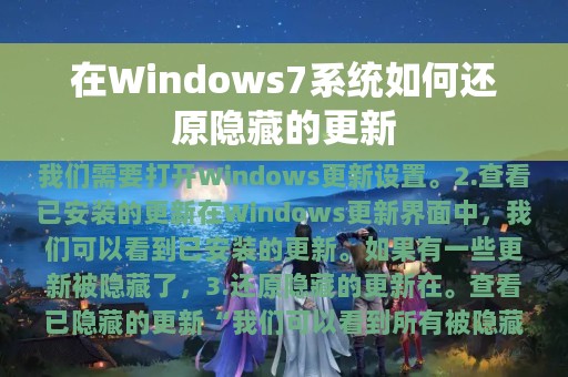 在Windows7系统中,有时候会出现隐藏的更新,这会导致系统的安全性和稳定性受到影响。那么如何还原隐藏的更新呢?下面我们就来详细了解一下。