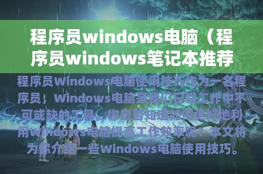 作为一名程序员,Windows电脑是我们日常工作中不可或缺的工具。但是,你是否知道如何更好地利用Windows电脑提高工作效率呢?本文将为你介绍一些Windows电脑使用技巧,帮助你更好地完成工作。