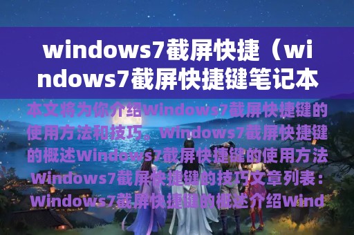介绍Windows 7截屏快捷键的高级使用技巧。