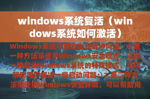 3. 本文将介绍几种方法,帮助用户复活Windows系统。