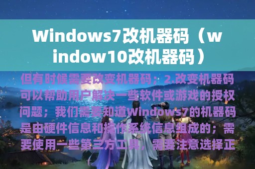 3. 本文将介绍Windows7改机器码的方法和注意事项。