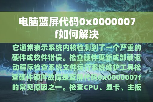 蓝屏代码0x0000007f可能由硬件故障、驱动程序、系统文件损坏等多种原因引起。解决该问题的方法包括检查硬件、更新或卸载驱动程序、检查系统文件、运行系统维护工具等。在解决问题时需要谨慎,以免造成更严重的后果。