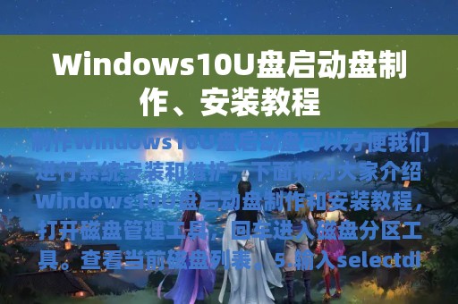 制作Windows10U盘启动盘可以方便我们进行系统安装和维护,而且相比于光盘,U盘的速度更快,使用更方便。下面将为大家介绍Windows10U盘启动盘制作和安装教程,希望对大家有所帮助。